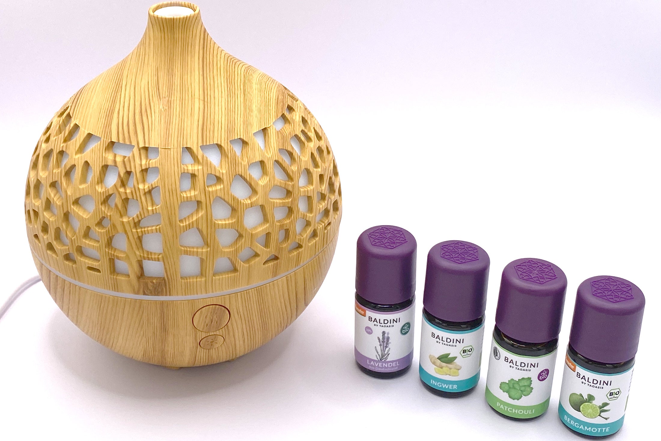 Ultraschall Aroma Diffuser 180 ml Zerstäuber + Baldini Bio Vier Elemente Set