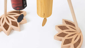 Unser neuer Klangspielständer im Lotusdesign wird von einem erfahrenen Kunsthandwerker auf der Drechselbank gefertigt und besteht aus massivem Buchenholz.